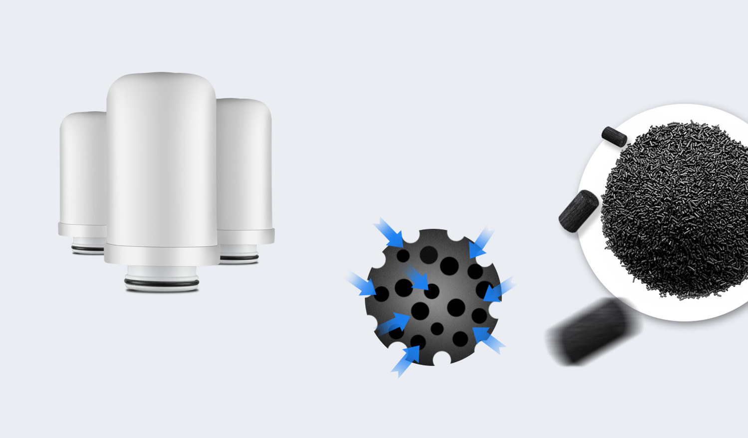 天然海底硅藻泥无公害陶瓷,经久耐用; 椰壳活性炭深层吸附自来水中异味、异色、余氯等。 安心享好水。
